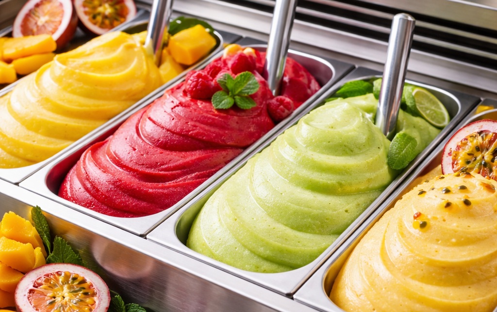 Refreshing fruit sorbets made with real fruit purees, delivering clean flavour and smooth texture. Dairy-free and suitable for vegan customers. Ideal for hotels, buffets and food service.