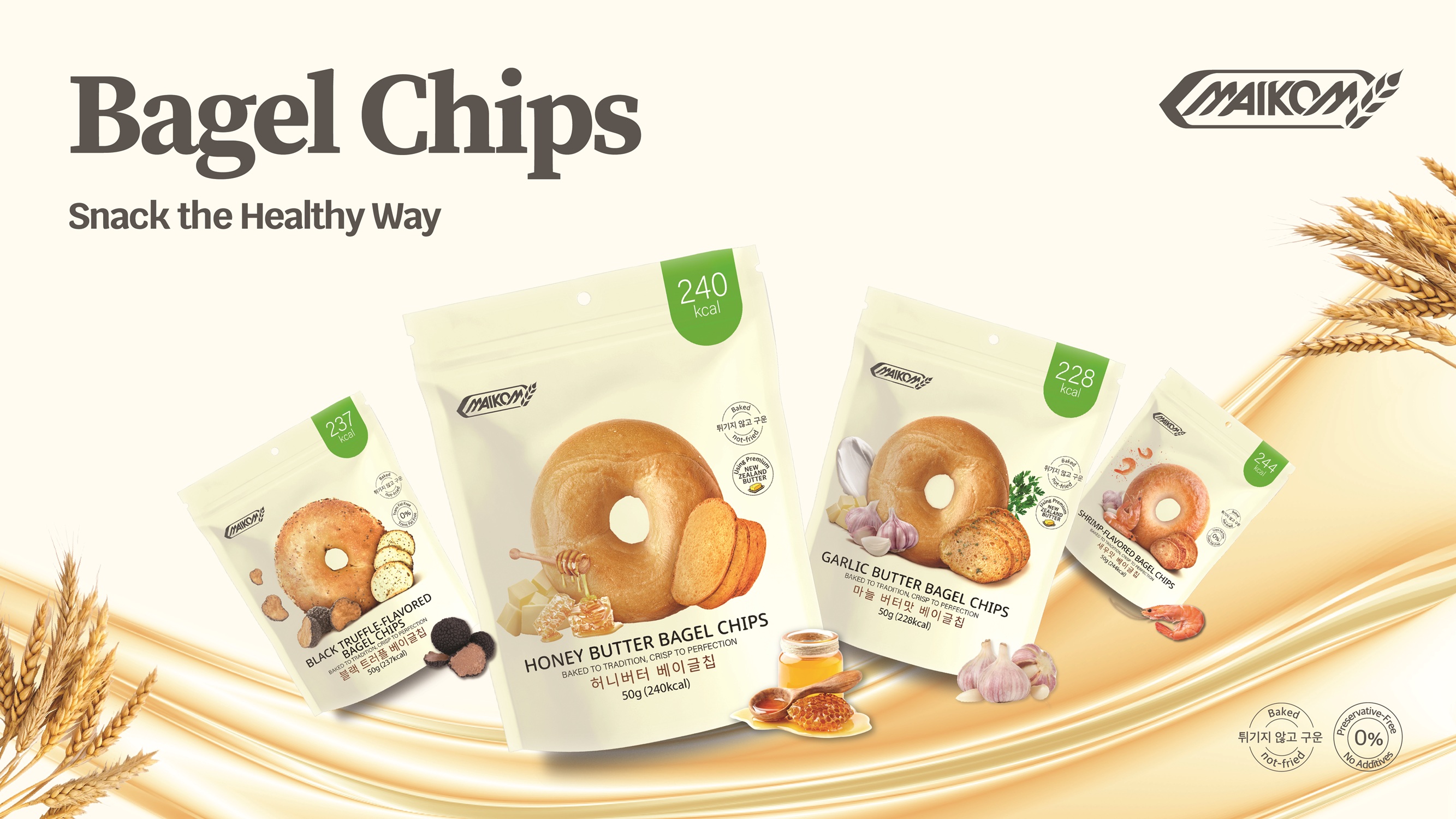 Maikom Bagel Chips are premium oven-baked, low-calorie snacks with a light crunch. Made with quality ingredients and tasty flavours, they are a healthy alternative for guilt-free everyday snacking.
