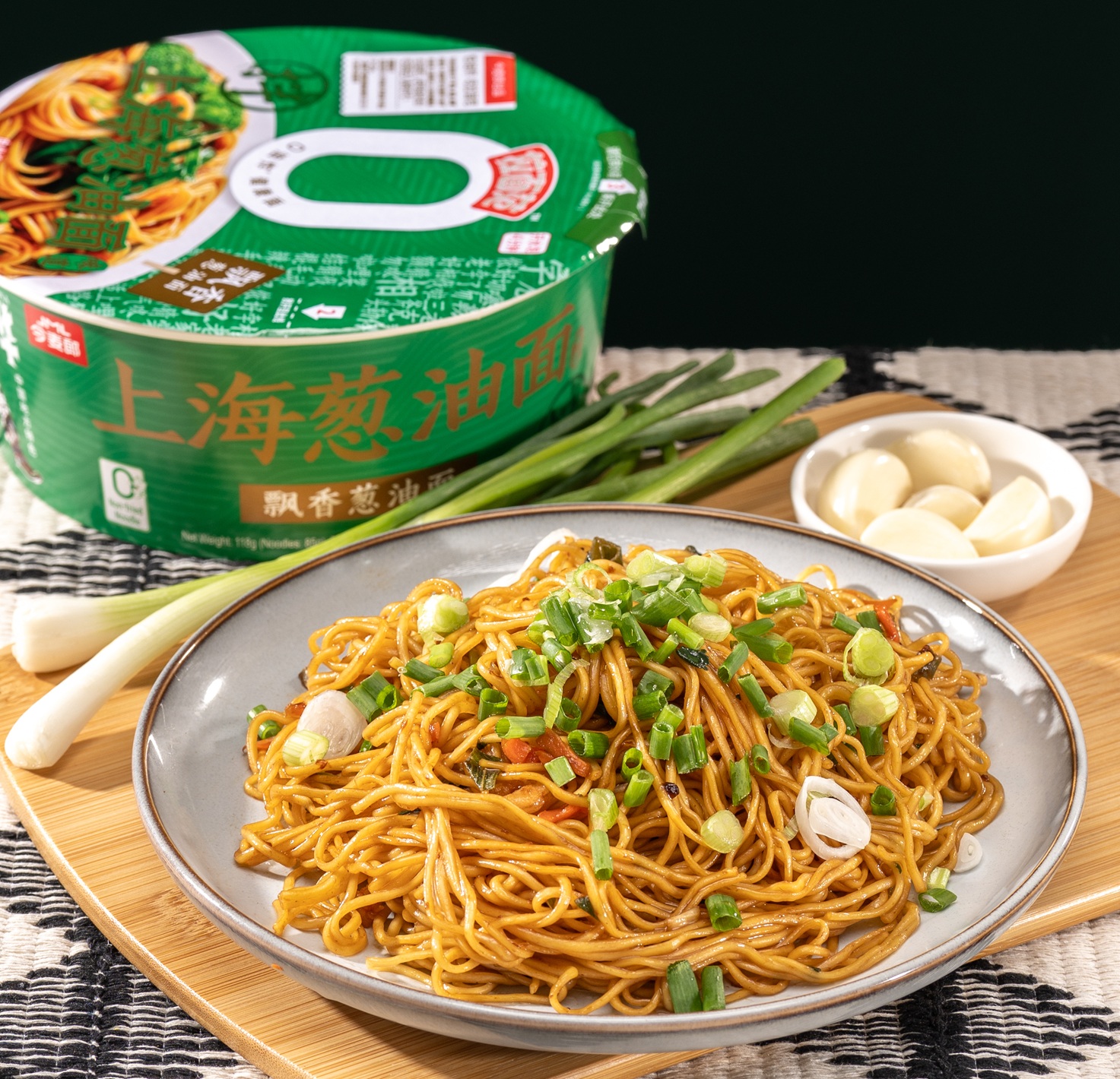 Bringing together slow-cooked scallion oil, sweet soy sauce and umami-rich notes like onion, sesame oil, shrimp, and vinegar. Paired with chewy noodles and bits of dehydrated scallion and carrots, such a delicious bite in every mouthful.