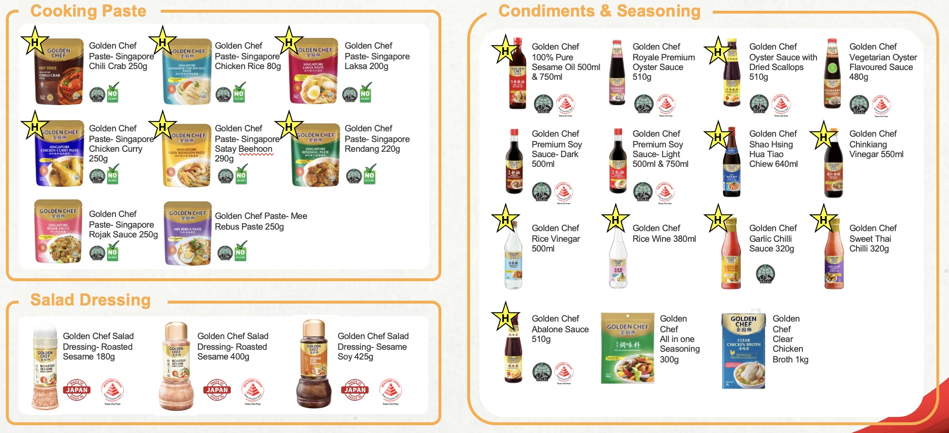 Product Category: Condiments and Sauces, Cooked Food, Meat, Snacks and Confectionery