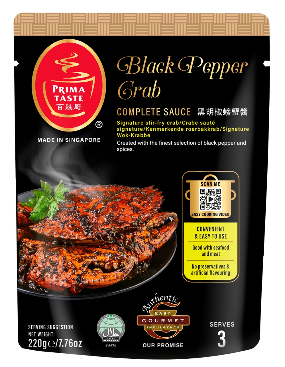 Prima Taste Black Pepper Crab Complete Sauce is an all-in-one sauce featuring the finest selection of black pepper and spices, making it easy to recreate this dish at home.